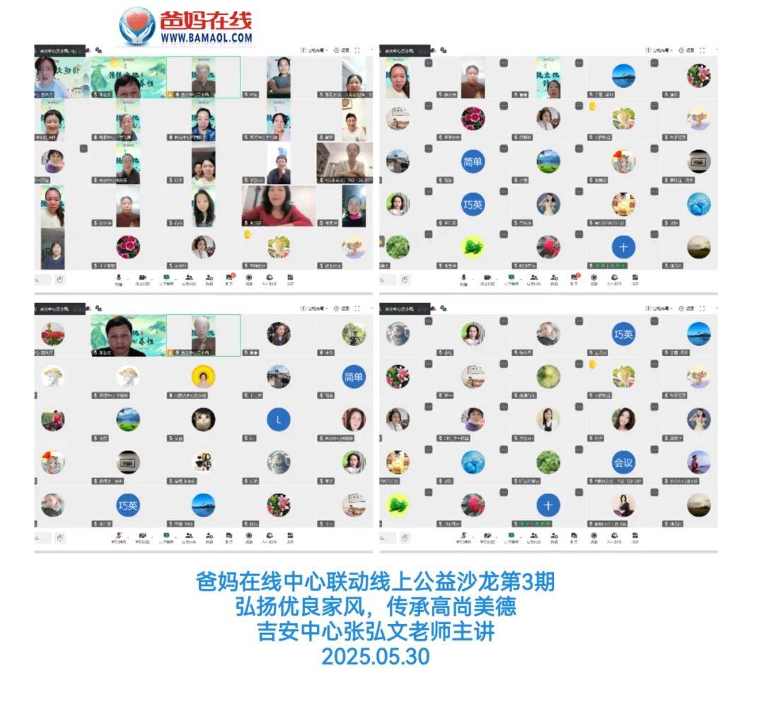 5月30日晚7點(diǎn)30分,由爸媽在線江西吉安中心發(fā)起,張弘文老師傾情主講的“弘揚(yáng)優(yōu)良家風(fēng),傳承高尚美德——看三蘇家風(fēng)家教”線上公益沙龍活動成功舉辦。此次活動由內(nèi)蒙等八個(gè)爸媽在線中心協(xié)同組織,四十余位學(xué)員齊聚云端,共同開啟了一場關(guān)于千年家風(fēng)的智慧之旅。