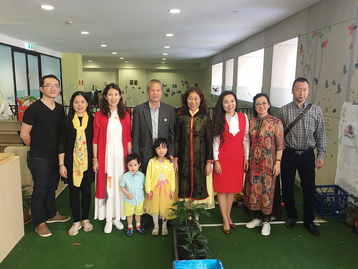 爸媽在線澳洲上市工作組一行六人應悉尼國際兒童婦女聯合會鐘穎主席的盛情邀請和陪同,參觀了位于悉尼市中心的澳洲蒙氏寶貝天使幼兒園,受到了幼兒園CEO戴總的熱情接待,并帶領工作組六人參觀了幼兒園的各個區域